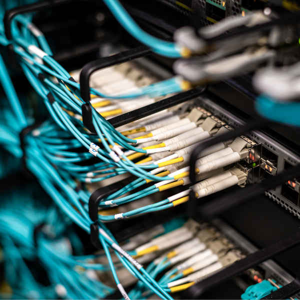 Instalações de rede óptica garantindo alta velocidade e estabilidade.